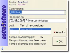 Registra le attività degli operatori di linea al fine di poter avere i tempi di lavorazione, pausa e fermo per operatore/macchina/fase di lavorazione.